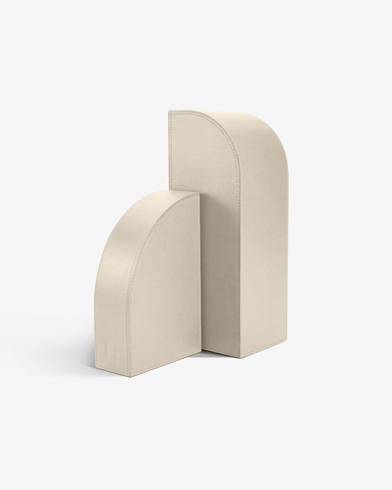 The Cubist Bookends combine the worlds of design and art. Inspired by the iconic art movement, these sculptures are wrapped in pebbled leather and feature subtle brass hardware, making them perfect for cultural connoisseurs. Sold separately, each piece features its own distinct character, highlighted by smooth curves and a modernist flair.